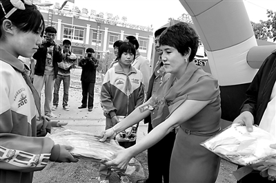 6月1日,由河北香河三强实业集团股份有限公司投资272万元兴建的希望小学,在围场满族蒙古族自治县燕中村落成投用,400多名学生的学习环境得到改善。当日,三强集团负责人李海燕为孩子们送去电脑、校服等学习和生活用品。本报记者 李昱霖 摄