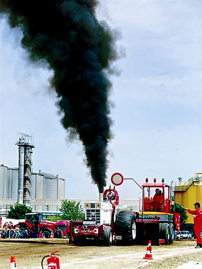 6月3日,在奥地利多瑙河畔城市图尔恩,一名比利时选手驾驶“Code Red”参加拖拉机牵引赛。