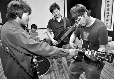 5月28日,由5名年轻炼钢工人组成的“蓝翎羽乐队”正在进行排练。这几名20多岁的小伙子是河北前进钢铁集团有限公司炼钢厂生产一线的工人,因共同的音乐爱好走到一起,工作之余一起击鼓拨弦,排练表演,他们的梦想是有一天能够拥有属于自己的音乐。杜岩龙 摄