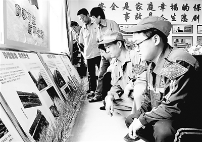 6月1日,西安东车辆段新丰下行运用车间新丰二场建成了全段第一个职工安全警示教育室,警示教育室不仅收集了近年来铁路发生的各种典型事故案例和图片,而且还收入许多职工身边发生的典型事故案例。当天,新丰二场二班职工在副工长王海波(右二)的组织下,在此上了第一个班组安全教育课。职工们觉得,这样的氛围给人的警示和教育比讲多少大道理都更能入脑入心。 胡小文 摄