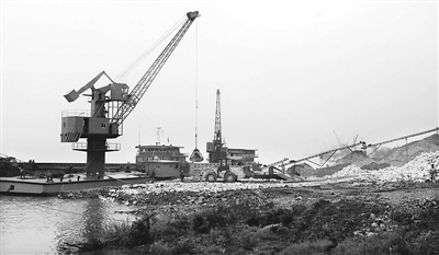 黄石新港(物流)工业园,辖区内拥有7.7公里长江黄金水道,工业园正是依托着得天独厚的条件建成。昔日风景秀丽的江岸,如今大大小小的码头、沙站密布,初步统计就有30余家,绝大多数没有合法证件。工业园内疯狂“种”码头、沙站的现象引起黄石市委市政府高度重视。2012年4月28日,黄石新港(物流)工业园组织了一次由多部门组成的联合行动,拆除了4个违法建设的码头和沙站,但违建势头并未因此停止。