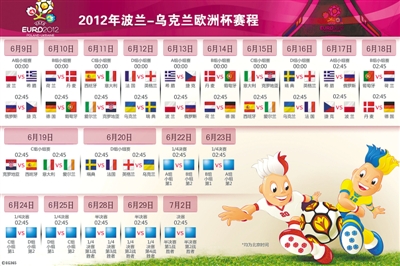 本届欧洲杯的分组形势为A组:波兰、希腊、俄罗斯和捷克;B组:荷兰、丹麦、德国和葡萄牙;C组:西班牙、意大利、爱尔兰和克罗地亚;D组:乌克兰、瑞典、法国和英格兰。
