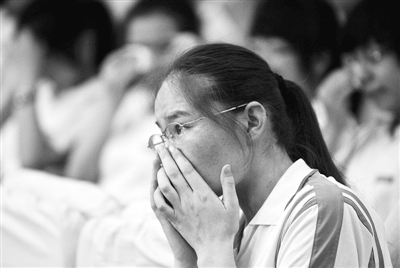 6月9日,一名内地新疆高中班的毕业生在毕业典礼上流下眼泪。