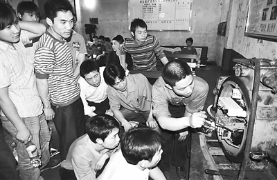 6月11日,重庆能源集团同华煤矿机电队电工班开展了“行为隐患众人揪”活动,由高级电工陈剑(前)模拟井下现场维修防爆开关,其余的人观看并查找他的不安全行为。只见陈剑迅速断电、掀盖子、查故障……大家紧张地瞪大眼睛,盯着陈剑的每一个动作:没穿戴劳保用品、没检查工具是否安全、未经测电笔确定是否带电、没悬挂警示牌……在陈剑的9项违规操作行为被揪出来的同时,在场的每一位员工也跟着做了一回自检。向良忠 摄