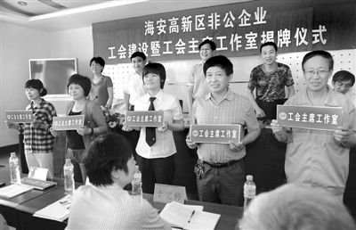 6月12日上午,江苏省海安县、高新区总工会为江苏万力集团等29家非公企业“工会主席工作室”集体授牌。这标志着该区在非公企业建立“工会主席工作室”工作全面启动,这一创新举措在全省工会系统尚属首创。