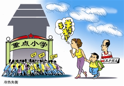 这只是北京重点小学与普通小学招生情况的一个小小缩影,却告诉人们一个现实:每个孩子都有学上,但是更多的家长都在追逐“上好学”。随着择校问题的愈演愈烈,“重点学校挤破了头,普通学校招不满生”的两极分化的现象越来越严重。