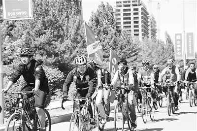 6月10日,内蒙古自治区呼和浩特市80多名自行车爱好者相约骑行50多公里,以倡导全民健身和低碳环保的生活理念。参加活动的自行车手来自于社会各界,年龄最大的62岁,最小的仅12岁。新华社记者 林超 摄