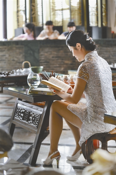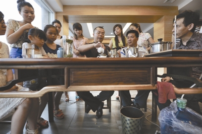 茶艺师周丽梅被公司刚刚录用半个月,她说,茶艺师的工作让我开阔了眼界,感受了优雅,充满了乐趣,我将不断努力,完善自我,提升技艺。(摄于6月9日17时)