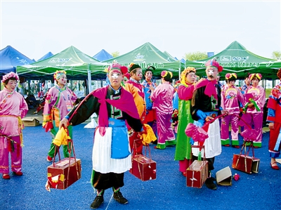 海阳大秧歌准备登场。本报记者 刘颖余 摄