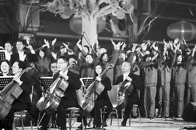 潍柴集团把大型交响乐搬到车间,让普通员工在工作一线就能享受到高雅艺术。杨登峰 摄
