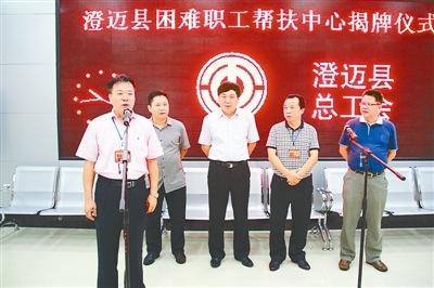 “目前,澄迈县工会困难职工帮扶工作已成为县委、县政府关注民生、为民办实事的一个重要平台,形成了‘党委直接领导、政府大力支持、部门共同参与、工会具体运作’的帮扶工作格局。”6月17日,海南省人大常委副主任、省总工会主席符兴在出席澄迈县困难职工帮扶中心揭牌仪式上表示。