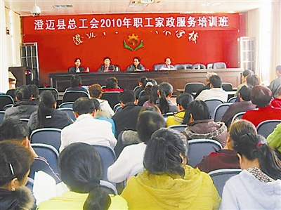 除此,澄迈工会还开展了“送就业岗位、送就业信息、送创业项目、送技能培训”为内容的“四送”援助行动。先后开办了家政保姆等10多种投资小、用得上的培训项目,深受困难职工的欢迎。