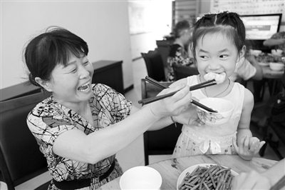 6月20日晚,四川省广安市广安区奎阁街道大桥社区,党员志愿者正在给结对帮扶的留守儿童吃粽子。当日,大桥社区和奎阁街道联系社区的党员志愿者自掏腰包办了3桌“坝坝宴”,邀请社区的15名留守儿童和空巢老人共进午餐,同品棕香和传统菜肴,快乐过端午。