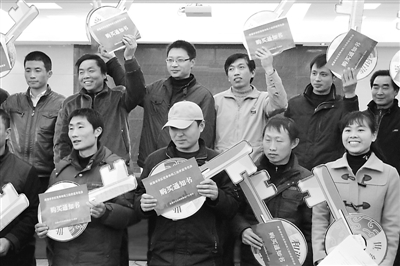 2011年3月18日,19名优秀农民工和缴纳社会保险时间较长的外来农民工领到了南通市经济适用房购房通知书。