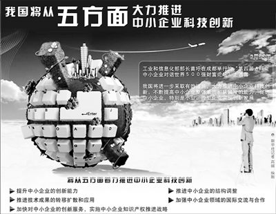 据新华社报道,我国将从五方面着力推进中小企业科技创新:提升中小企业的创新能力;推进中小企业的结构调整;推进技术成果的转移扩散和应用;加强中小企业领域的国际交流与合作;加快对中小企业的创新服务,实施中小企业知识产权推进战略。