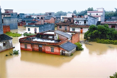 6月24日,广西钟山县回龙镇回龙村民房被洪水浸泡。新华社发