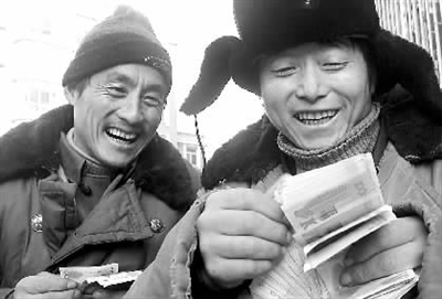 沈阳市农民工维权中心大厅,近千名农民工高兴地领到了拖欠长达一年之久的工资。 杨新跃 摄