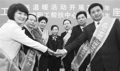 今年是全国工会送温暖活动开展20周年、困难职工帮扶中心建设10周年,在年初的表彰会上,受表彰的全国工会帮扶先进集体和先进个人代表与受资助者代表(图中)一起合影。20年风雨同舟路,因为有你,所以温暖。 本报记者 杨登峰 摄