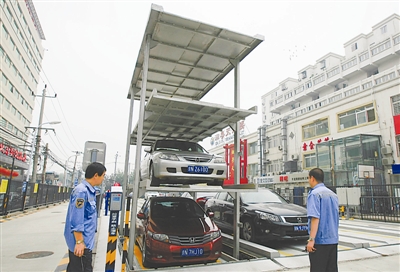 车主可通过刷卡,自主完成升降操作,将车停放在对应的车位。目前北京机动车已突破500万辆,但现有停车位严重不足。刘关关 摄