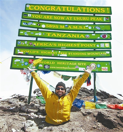 近日,加拿大一名双脚截肢的男子斯宾塞·韦斯特凭着坚强的毅力,用双手成功登顶非洲最高峰、5895米高的乞力马扎罗山。他在登顶后表示,手指流血、起水泡都值得,登上乞力马扎罗山是他一生中最考验精力和体力的事。