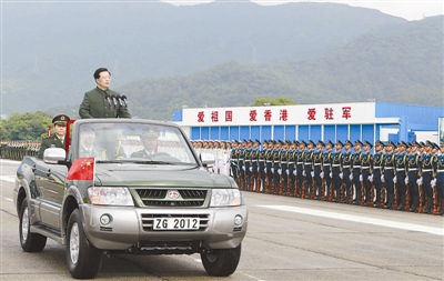 6月29日,胡锦涛在香港石岗军营检阅中国人民解放军驻香港部队。 新华社记者 鞠鹏 摄