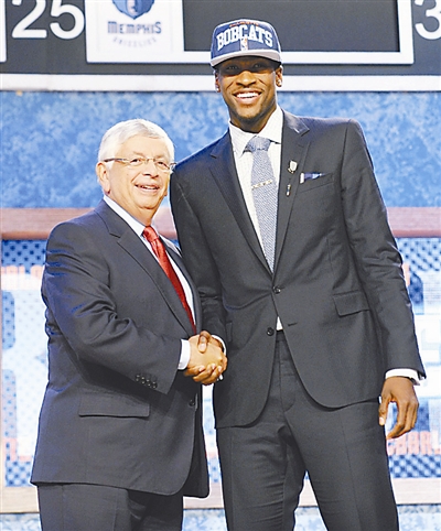 图为戴维斯(右一)和NBA总裁斯特恩握手。CFP供图