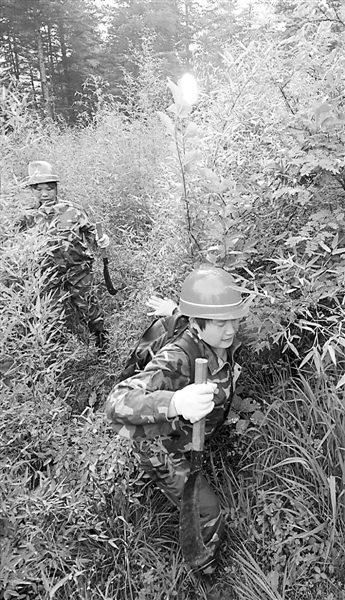 森林里没路,砍刀为他们前行扫清障碍。