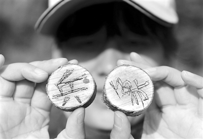 职工们用清理的树枝做的象棋,下象棋是他们业余最大的爱好。