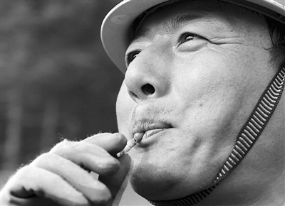 为联系方便,职工们用山里的竹子做成哨子 。