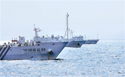 2日8时,参加此次定巡的中国海监83船、84船、66船、71船在短暂休整后,从永暑礁东北锚地起锚。8点30分,海上编队演练开始。