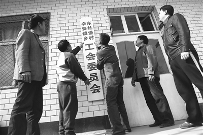 2012年4月12日,河北邯郸肥乡县,经工作组成员多方协调努力,一家村级工会最终顺利挂牌。东方IC 供图
