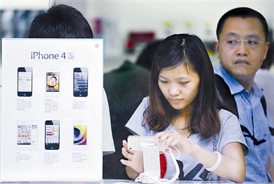 7月2日,据广东省高级人民法院消息,美国苹果公司以6000万美元与深圳唯冠科技有限公司达成iPad商标纠纷和解,iPad在中国大陆的商标权随即归苹果公司所有,这意味着早于3月上市的新一代iPad将很快获准在中国大陆地区上市。图为顾客在广州一家苹果销售店选购产品。 新华社记者 陈晔华 摄