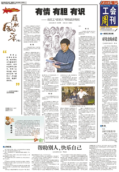 当我们看到杨丽“一辈子扎根在工会一线,一辈子与职工群众打交道”的身影,当我们听到刘双“用爱为身处困境的孤儿和贫困家庭孩子撑起一片天”的心声,当我们掂量到陈有德“义乌维权模式”的分量,当我们回忆起陈超英生前“想职工之所想,急职工之所急”的动人一幕,以及了解了潘兰英、王远文、曹晓斌、王小骏、常雨琴、范秀林等优秀工会工作者的典型事迹,我们就会感觉到一种催人奋进的力量。