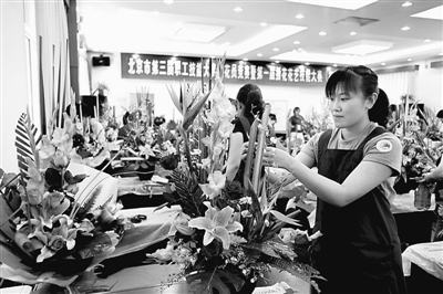 7月2日,北京市第一届插花花艺技能大赛初赛拉开帷幕,来自北京城建集团花木公司的36位选手参加了角逐。本次大赛将经过初赛、复赛和决赛三个阶段,最终产生冠军、亚军、季军和10名插花能手。黎方益 摄