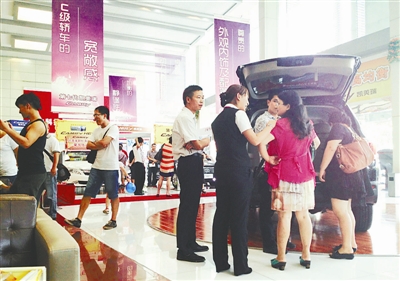 7月1日,广州市白云区机场路一家汽车销售店人头涌现。据该店销售员表示,因为7月1日是周未,他们可以将发票开成6月30日的,购车依然有可能上牌。不少希望能搭上末班车的客户交了订金。