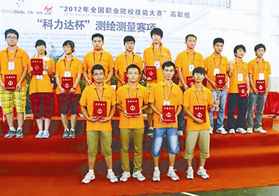 在近日结束的2012年全国职业院校技能大赛高职组测绘测量赛中,黄河水利职业技术学院获得团体一等奖。图为黄河水院参赛队员“全家福”。魏豪 摄