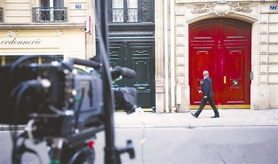 7月3日,记者聚集在法国前总统萨科齐的新办公室门前。 阿康 供图