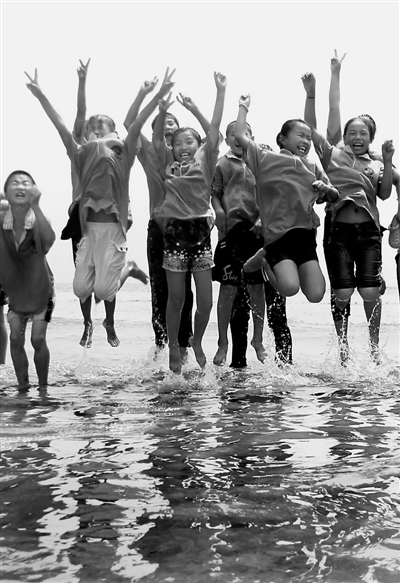 7月7日,河北沧州首批25名留守儿童来到青岛海水浴场亲密接触大海,圆了自己看海心愿。进入暑期,河北《沧州晚报》、沧州红心志愿服务队等机构为百名留守儿童举办了暑期留守儿童免费夏令营,组织志愿者带领留守儿童走进自然,让他们健康快乐成长。