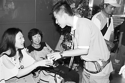 北京南站建立全新的“爱心服务区”,“爱心通道”志愿者为老、幼、病、残、孕等重点旅客,提供电话和网络(微博)预约接送站的“一站式爱心服务”。冯博 摄