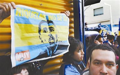 7月9日,在布宜诺斯艾利斯,阿根廷博卡青年队的球迷聚集在博姆内拉体育场外挽留里克尔梅。