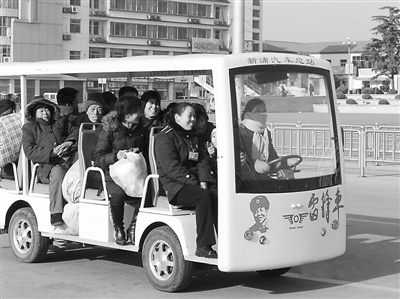 “雷锋车”早已是“开”而不是“拉”了,但大家还是习惯地称作“拉”。我拉“雷锋车”已有10年,每当热心帮助一位旅客,心里就有一份说不出的高兴。今年6月13日上午,我像往常一样准备将“雷锋车”拉到火车站。突然,一个女孩迎面跑来,焦急地说:我和妈妈要赶火车去广州,时间快要赶不上了,能送我们吗?“好的,请上车!”我迅速帮助母女俩放好行李。还没到车站,母亲忽然晕倒在座位上。我迅速停车急救。女孩哭着告诉我,妈妈有心脏病。我马上用“雷锋车”送她们去了医院,又一口气帮着挂号、体检、拿药,楼上楼下、忙前跑后,直到主治医生确诊没有大碍,我才松了一口气。关爱换来理解,坚守赢得尊重。一位曾得到我们帮助的上海旅客,每次路过火车站,都要来和我握手,他说:“感谢你们,我会永远记住连云港,永远记住你们这群雷锋小妹!”