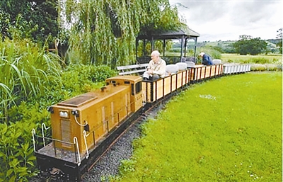 据外媒7月9日报道,英国什罗普郡巴斯市一位80岁的老翁情迷火车,他耗时3年终于在自己的后花园建成了铁轨,并购买了蒸汽小火车。