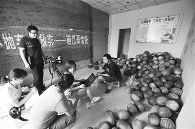 7月10日,媒体在郑州市农业路和天明路交叉口西南角的卖瓜点采访“西瓜哥”常赞。