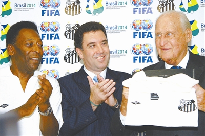 阿维兰热(右)2009年与球王贝利(左)在一起。