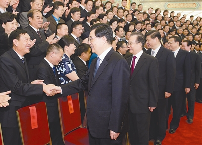 胡锦涛亲切会见与会代表 代表党中央、国务院向受到表彰的先进集体和先进个人表示热烈祝贺,向全国广大信访工作者致以诚挚问候