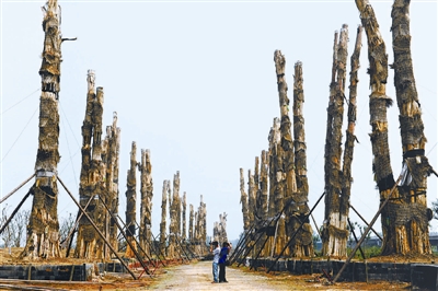 7月16日,合肥市成排的紫薇古树濒临死亡。
