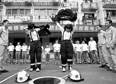 当日,为提高地铁员工的消防安全技能,上海黄浦消防支队官兵为上海地铁600余名志愿消防队员开展消防技能培训。在培训现场,消防战斗服穿着、墙式消火栓使用、空气呼吸器佩戴等项目依次展开。此举旨在增强地铁员工扑救初期火灾的应变能力,有效预防和遏制地铁沿线火灾事故的发生。新华社记者 陈飞 摄