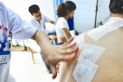 7月18日入伏第一天,山东滨州市邹平县中医院针灸、脾胃、内科等冬病夏治门诊迎来众多进行敷贴三伏贴的患者。患者根据自己所患慢性病,在不同的穴位进行敷药治疗,冬病夏治。