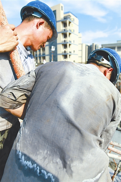 图为杭州彩虹快速路施工工人冒着酷暑作业。彩虹快速路是杭州市“三纵五横”快速路系统中重要的一条横向通道,为确保年底建成通车目标的实现,承建该工程四标段的中铁四局二公司杭州彩虹快速路项目经理部,在7月份持续高温期间,仍有300多名施工人员坚守在施工一线。(贡海斌 杨继刚)