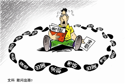 根据中国社科文献出版社出版的《2012年中国大学生就业报告》,2011届本科毕业生半年后就业率最高的专业是工学,最低的是法学,文科类专业普遍在就业率中垫后;本科生毕业半年后月收入最高的是工学,为3297元,最低的是教育学,为2621元。据记者调查,除就业困难、收入较低外,文科类本科毕业生即便考研和出国,也通常是陷入出路之困。